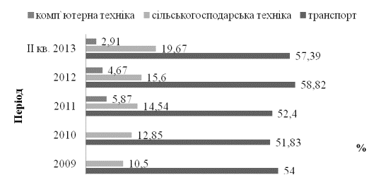 найбільшим попитом серед предметів лізингу користується транспорт та