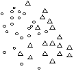 экспериментально, однако те задачи, в рамках которых гипотеза компактности хорошо выполнялась (рис. 2.а), находилось простое решение. И наоборот, те задачи, для которых гипотеза не подтверждалась (рис. 2.б), либо совсем не решались, либо решались с большим трудом. Этот факт заставил, по меньшей мере, усомниться в справедливости гипотезы компактности, так как для опровержения любой гипотезы достаточно одного отрицающего ее примера. Вместе с этим, выполнение гипотезы всюду там, где удавалось хорошо решить задачу обучения распознаванию образов, сохраняло к этой гипотезе интерес. Сама гипотеза компактности превратилась в признак возможности удовлетворительного решения задач распознавания.