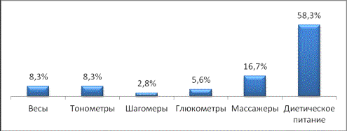 массажеры (16,7%), весы (8,3%). Так же респондентами были отмечены пояса,