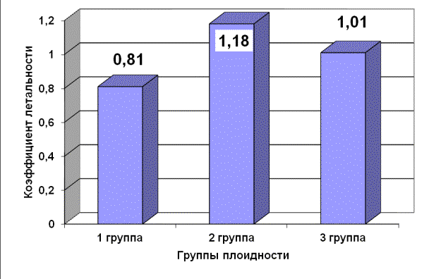 летальности=1,18). Больше всех выживших больных в 1-й группе с анеуплоидной