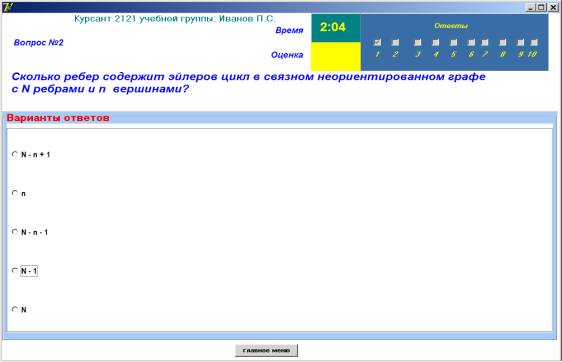 прохождения тестирования программа проставляет курсанту оценку. Для выхода из