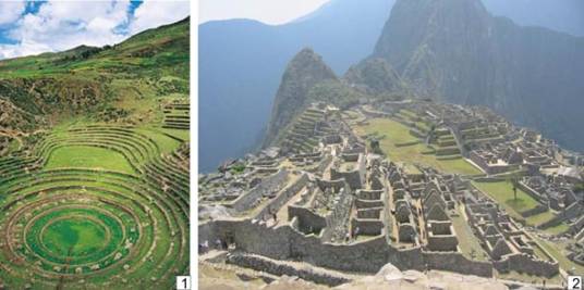 Рис. 1. Сооружения инков: 1) Поля Инков; 2) поселение