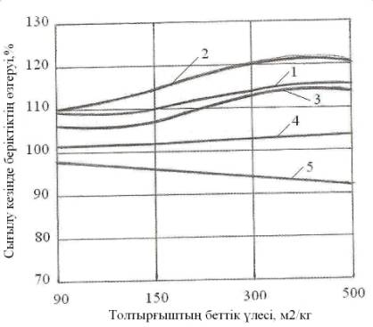толтырғыштар мөлшеріне және беттік үлесіне байланысты