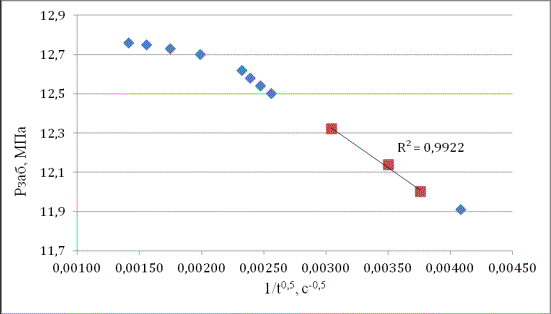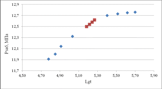 соответствующее началу прямолинейного участка в координатах «Рзаб(t)-lg(t)». По выделенному участку определяется уклон