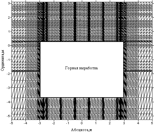 отрабатываемого пласта. Автоматическая дискретизация массива производится в