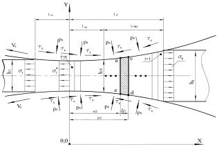 stresses within the width of the zone of deformation at cold rolling of brass CW508L; (DIN: