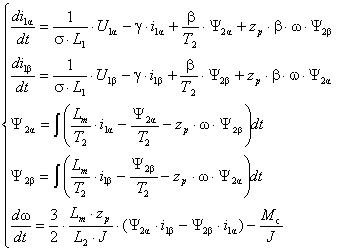 модель асинхронного двигателя при общеизвестных допущениях [1] можно составить