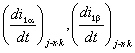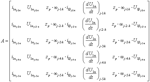 – производные напряжения статора по оси α на j, j-1·k, j-2·k,…, j-5·k шагах соответственно.