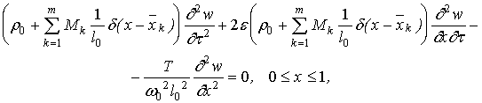 - дельта - функція Дірака; w(x,t) - поперечне відхилення; Т - натяг каната; w0 - власна перша частота