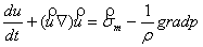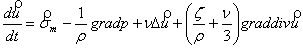 where t - time; uj - Cartesian components of the vector of the average speed (u,v); p - pressure;