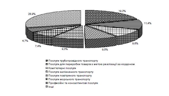 Рис. 1. Структура експорту послуг України за 2014 рік