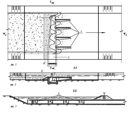 канала за пульповодом, т.е. в нижнем бьефе и примыкающими к пульповоду с