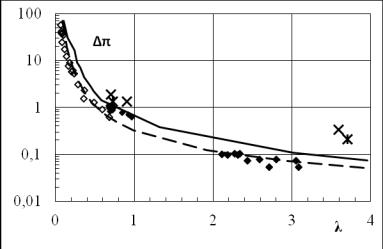 зависимостей ∆π (λ ) максимального давления и приведенного