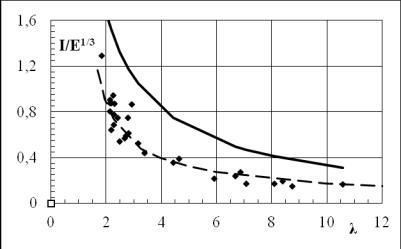 удельного импульса I/E1/3 (λ ) в сферической УВ от