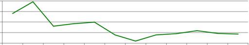 наибольший процент был в 2007 году – 19%, а в 2015 году -10% .