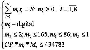 - each type of equipment through ³ = [1;8]; n – the number of types of equipment, n = 8, ѳ – unit