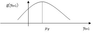 где yt+1 – значение доходности гипотетического портфеля, g(yt+1) – функция плотности распределения значений доходности гипотетического портфеля, my - математическое ожидание значения доходности гипотетического портфеля.