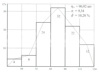 η=90.92 шт/м2 σ =9,34 шт/м2 δ=10,28%