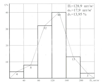 η=90.92 шт/м2 σ =2,75 шт/м2 δ=17,16%