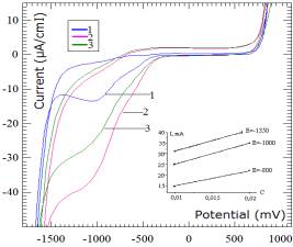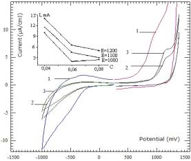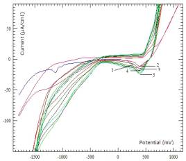 минут приводит к росту тока, как в катодной, так и в анодной области (кривая