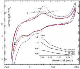 пастового электрода при рН=9,18 представлены на рисунке 4. На ЦВА в области