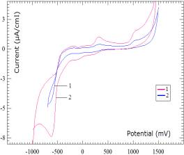 Е от -1000 мВ до Е=1200 мВ. Как видно из ЦВА на анодной ветви наблюдается две