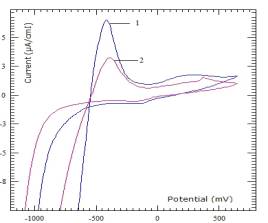 (пик при -400 мВ). В пользу данного рассуждения свидетельствует результаты