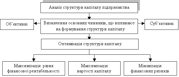 ризику у ході розвитку підприємства. На думку вітчизняних науковців [7, с.5-7], визначення оптимальної структури капіталу вимагає