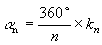 Кут між радіусами можна розрахувати за формулою: