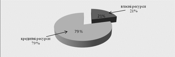 Рис. 1. Структура фінансових ресурсів фермерських господарств станом на