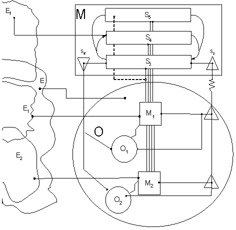 подразделяется на метасистему M и объект управления О.