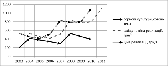 впровадженої цінової політики. Проте аналізуючи зміщену ціну реалізації можна