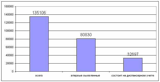 впервые выявленных с различной патологией составило 80830 больных или 59,8% от