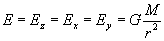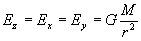 напряженности гравитационных сил по осям Х, У, Z равны