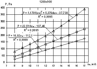 мм изменяется от 85 до 363,25 Па, 1200х900 мм – от 77,91 до 389,9 Па, 1080х1000