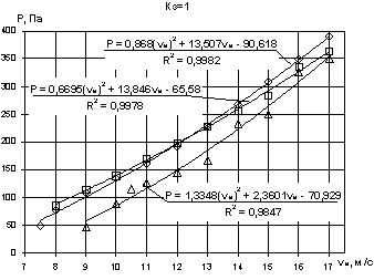 воздушного потока от скорости ветра описывается квадратичной функцией, при этом