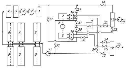 12-13 – коллекторы; 14-31 – запорные вентили.