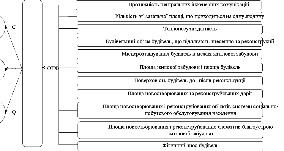 реконструкції житлової забудови належать вартість (С), тривалість (Т) та