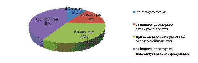 грн., а найменша частка належить виплатам на випадок смерті 2,3 млн. грн. [6].