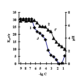 ðÍ of the solutions was measured on ðÍ-meter ÎÐ-264/1 («Reanal», Hungary) with the accuracy up to 0,03 unit of ðÍ. Catalase activity of the complex was determined by the modified methods [4] and it was expressed in the units of enzymic activity per 1g of dry gel.