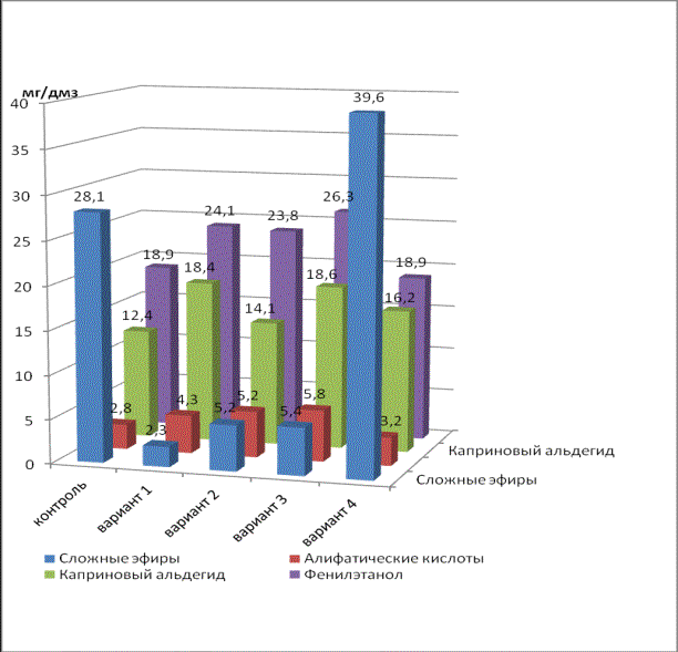 виноматериалах из сорта Первенец Магарача накопление сложных эфиров варьирует в