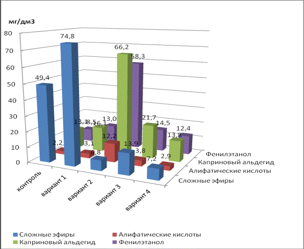 дрожжей (Эливит и Глутаром) на состав легколетучих ароматических компонентов и