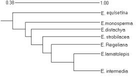 Рисунок 2- Кластерный анализ состояния ампликонов в RAPD-спектрах 7 видов эфедры |