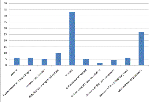 Fig. 1 Pathology of pregnancy per 100 women in Kalgan district in 2003 *