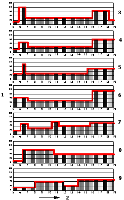 суток; 3- понедельник; 4- вторник; 5- среда; 6- четверг; 7- пятница; 8- суббота;