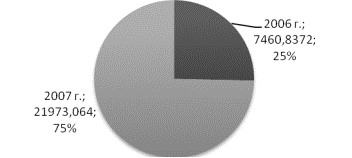 9 месяцев 2006 году образовался 7460,8372 тыс. тонн вскрыши, то за 9 месяцев 2007 года – уже 21973,064 тыс. тонн, т.е. в 2,9 раза