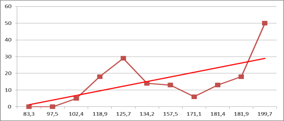 area the polynomial of the sixth degree was built. The got trend line shows the