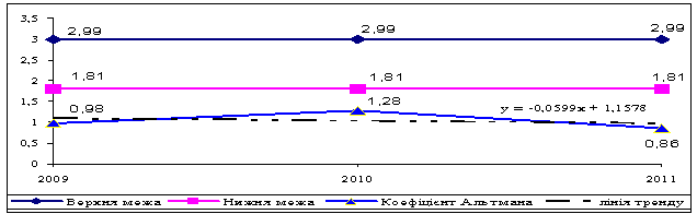 Рис. 1. Коефіцієнт Альтмана ПрАТ «УГМК-Миколаїв» за 2009-2011 роки