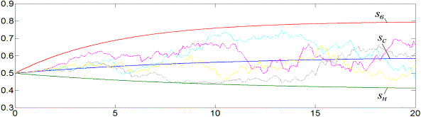 верхней и нижней границами для всех возможных траекторий изменения коэффициента