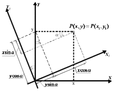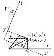 начальной системой 0XY и системой 0X1Y1, которую получили при повороте начальной системы на угол
